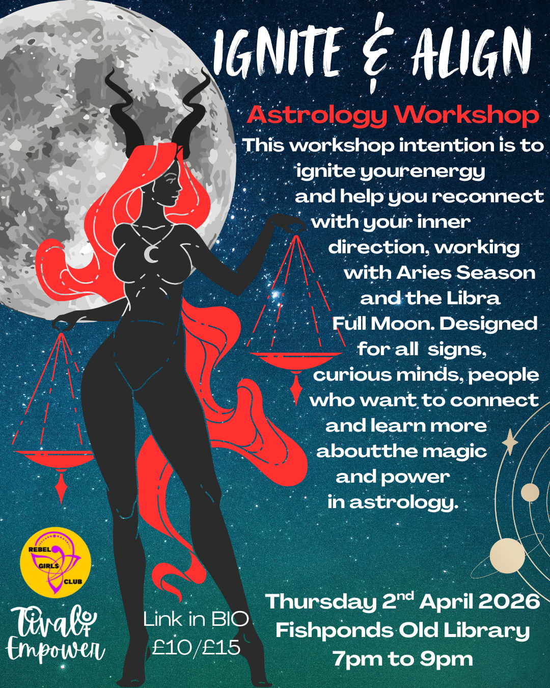Tonight I’m hosting Ignite & Align, a workshop created in collaboration with Rebel Girls Club — a space to reconnect, reflect, and realign through astrology and emotional awareness.